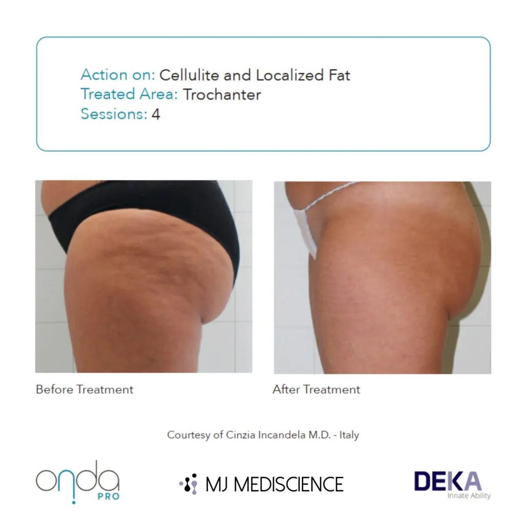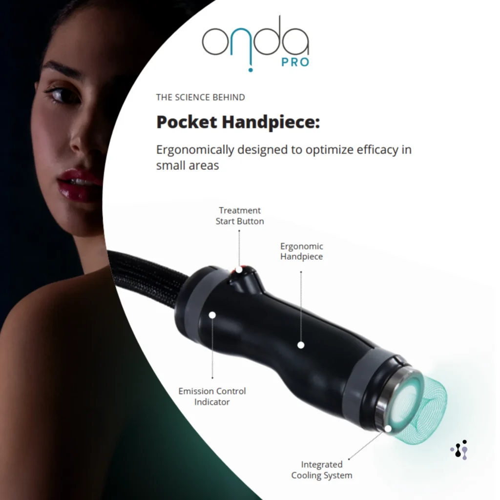 Onda Pro represents the next step in non-invasive contouring and firming, using Coolwaves® technology for enhanced tightening and lifting. The new Pocket Handpiece allows for more targeted treatments, extending the benefits to smaller areas with greater precision.