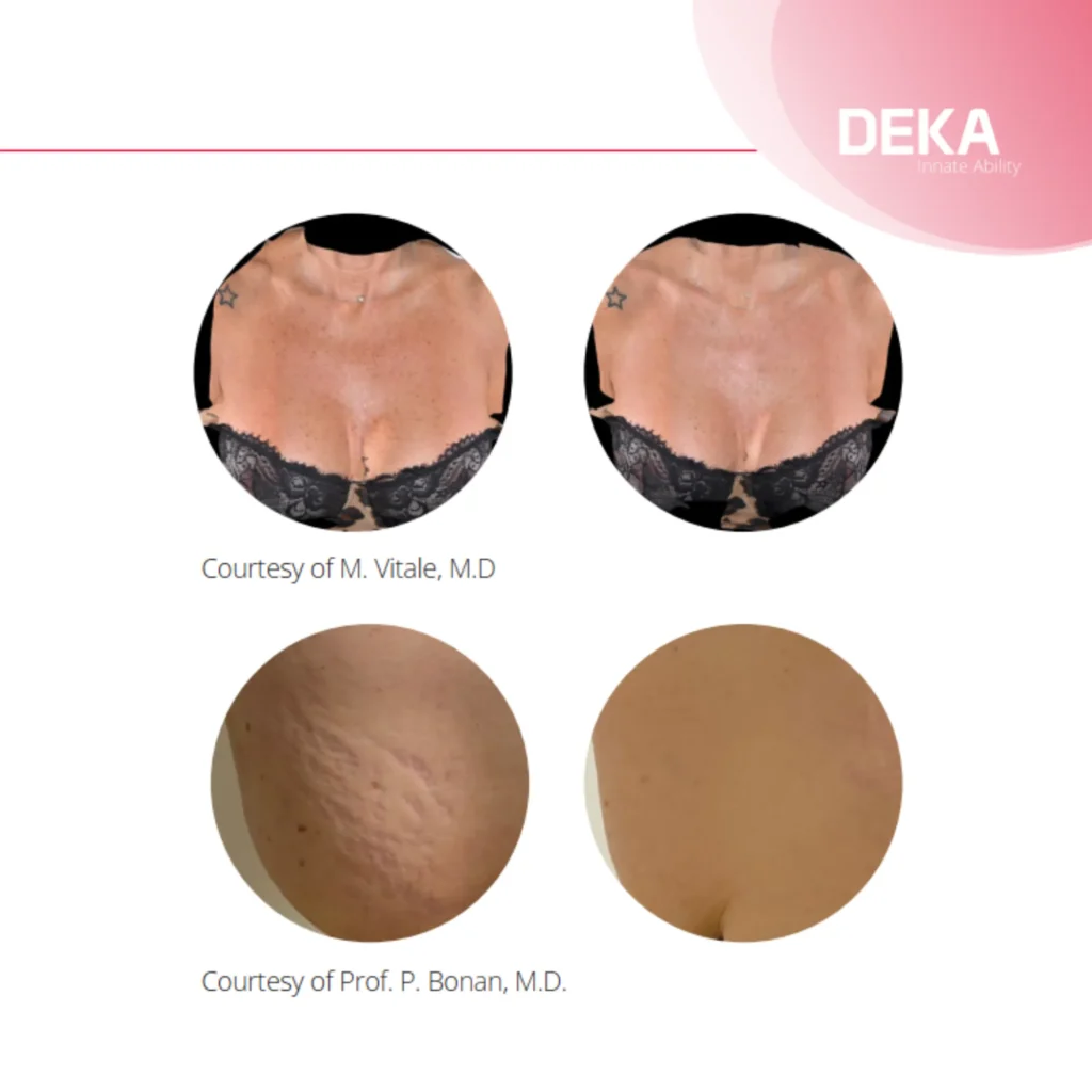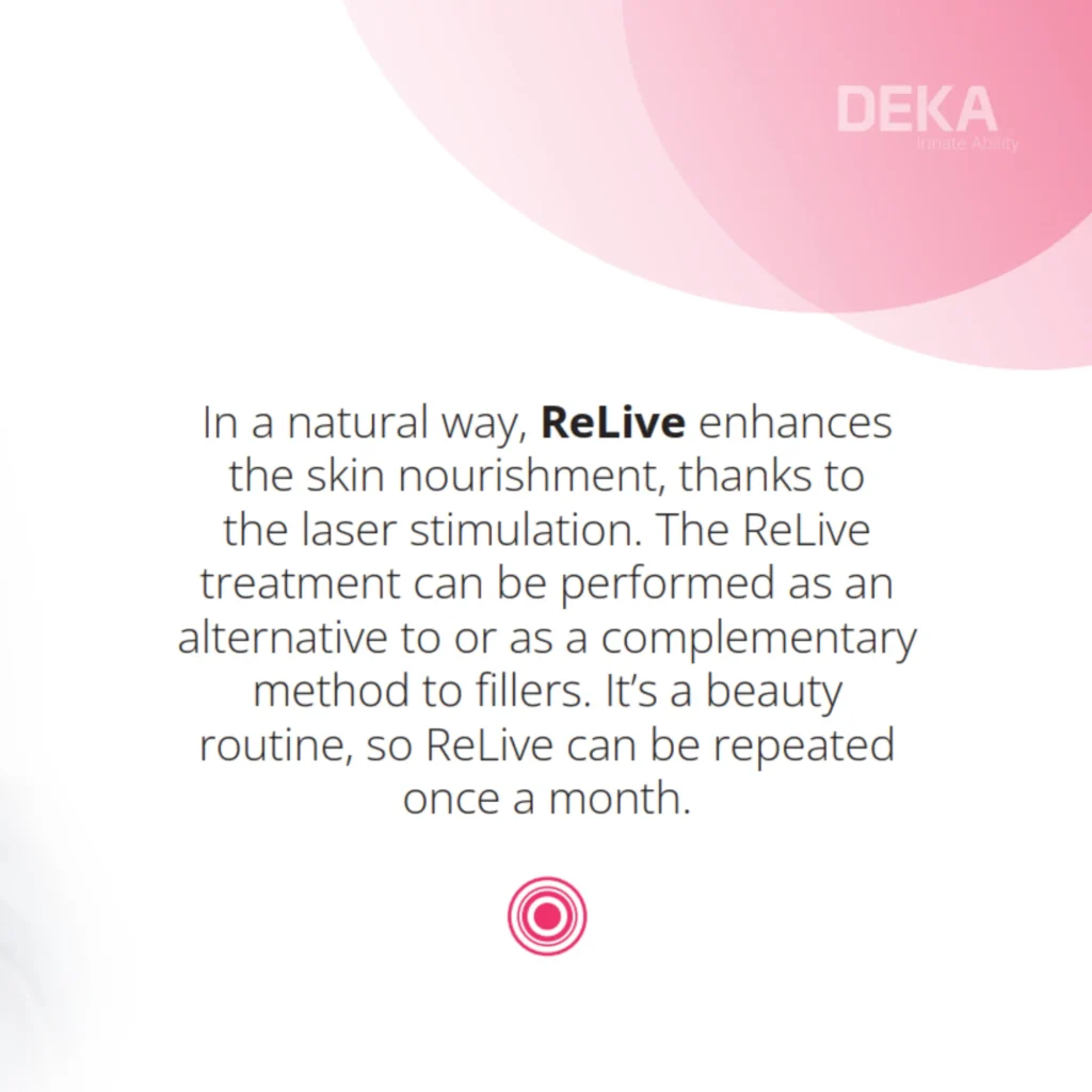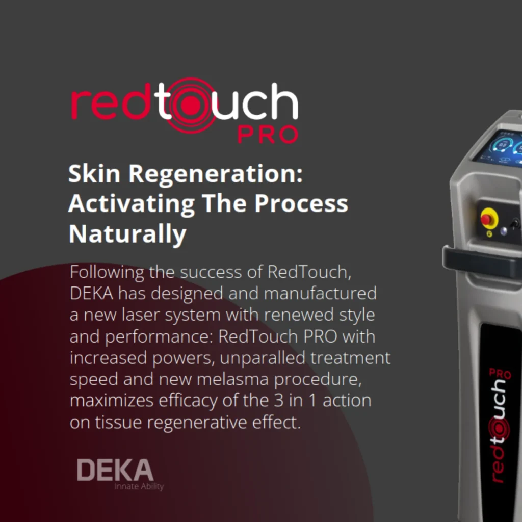 RedTouch PRO is DEKA's response to the demand for minimally-invasive facial rejuvenation. Its unique wavelength targets wrinkles, dyschromia, and vascular issues, offering full skin regeneration for all skin types. An upgrade from the original, RedTouch PRO delivers faster, more effective treatments with enhanced power, energy transmission, and cooling. The addition of MOVEO mode allows for quicker, more comfortable treatments on darker skin tones, while the ReLive treatment helps prevent and reduce ageing signs, naturally enhancing the filler effect.